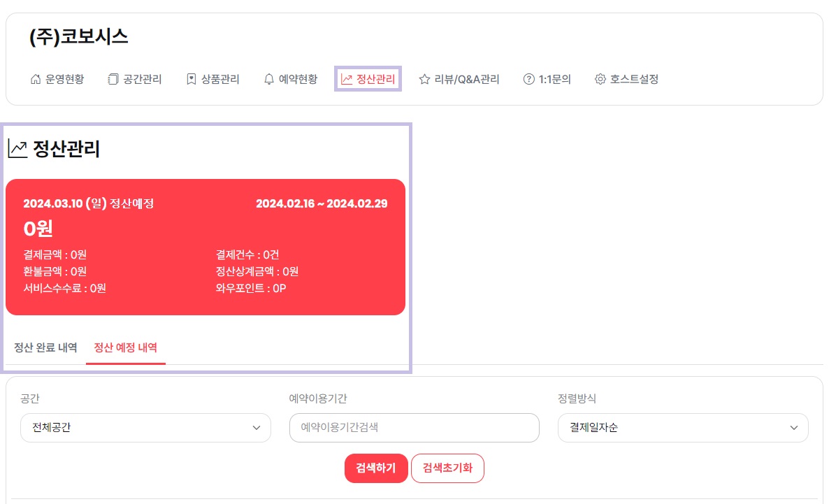 νΈμ€νΈμΌν° μ΄μκ΄λ¦¬ > μ μ°κ΄λ¦¬ λ©λ΄μμ μ μ° λ΄μμ νμΈν μ μμ΅λλ€.